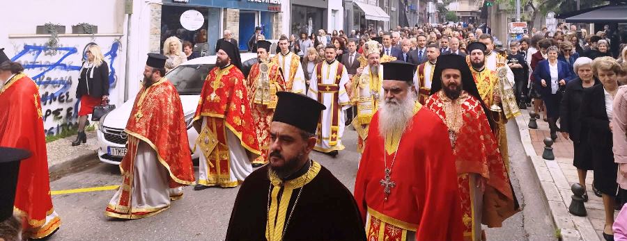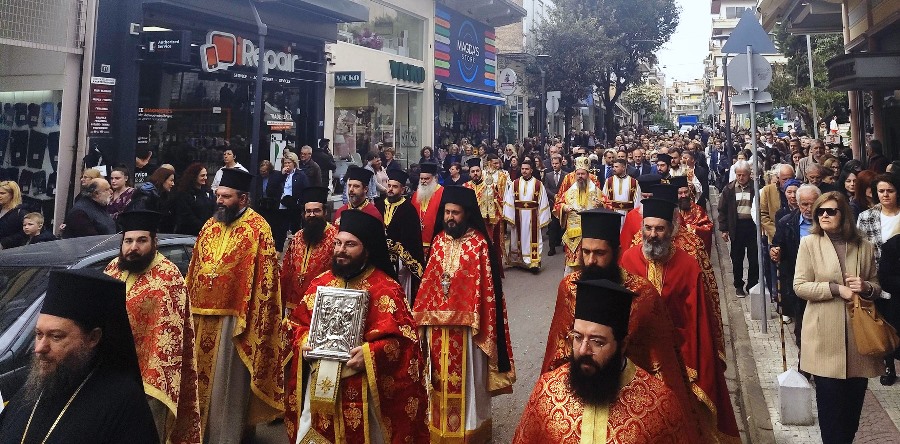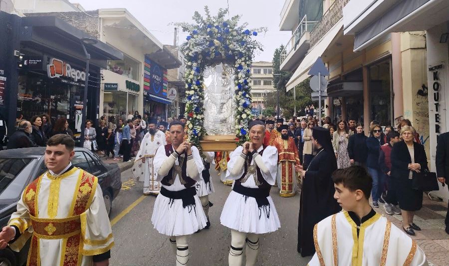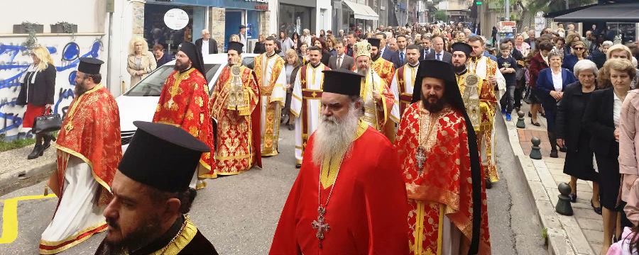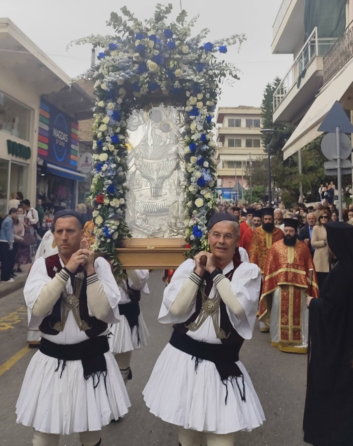 Πανηγυρίζει σήμερα ο Ιερός Μητροπολιτικός Ναός της πόλης του Αγρινίου, όπου αμέσως μετά την Θεία Λειτουργία, ακολούθησε, για δεύτερη φορά, η λιτάνευση της εφεστίου και θαυματουργού Εικόνας της Ζωοδόχου Πηγής στους κεντρικούς δρόμους της Ενορίας.