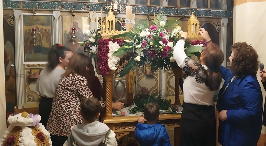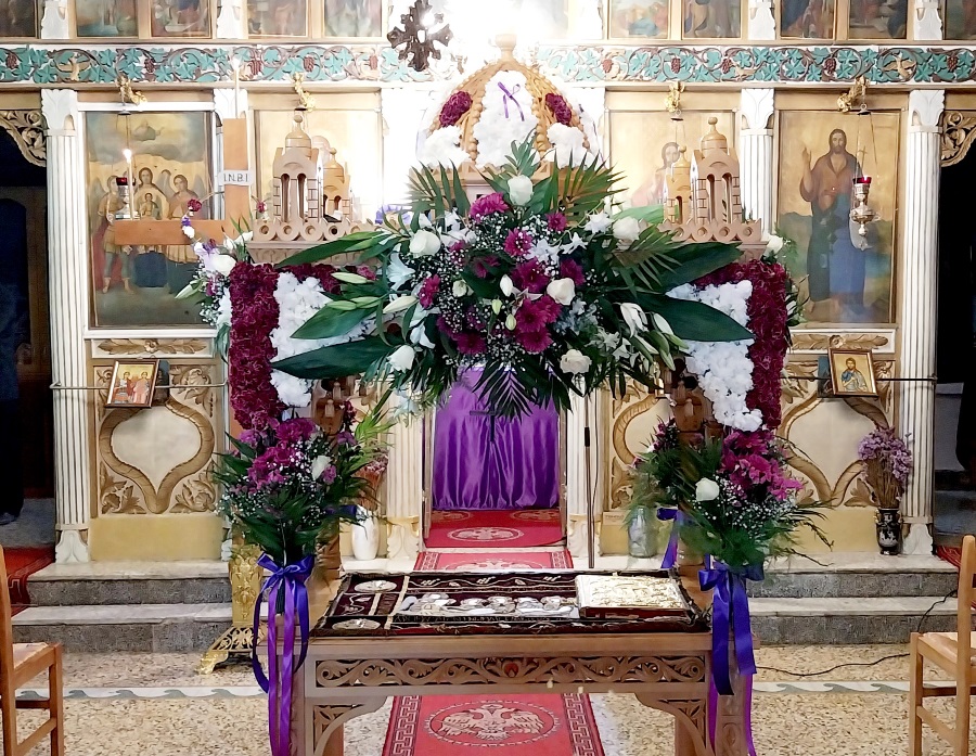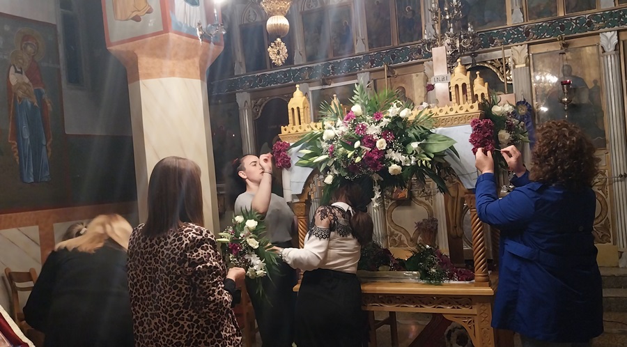Στην συνέχεια, πως κάθε χρόνο, με μεγάλη ευλάβεια και σεβασμό και τηρώντας τα ήθη, τα έθιμα και τις παραδόσεις, κυρίες και δεσποινίδες του χωριού στόλισαν τον Επιτάφιο έτσι ώστε το πρωί σήμερα, της Μεγάλης Παρασκευής, να είναι έτοιμος να δεχθεί το σώμα του Χριστού κατά την Αποκαθήλωση.