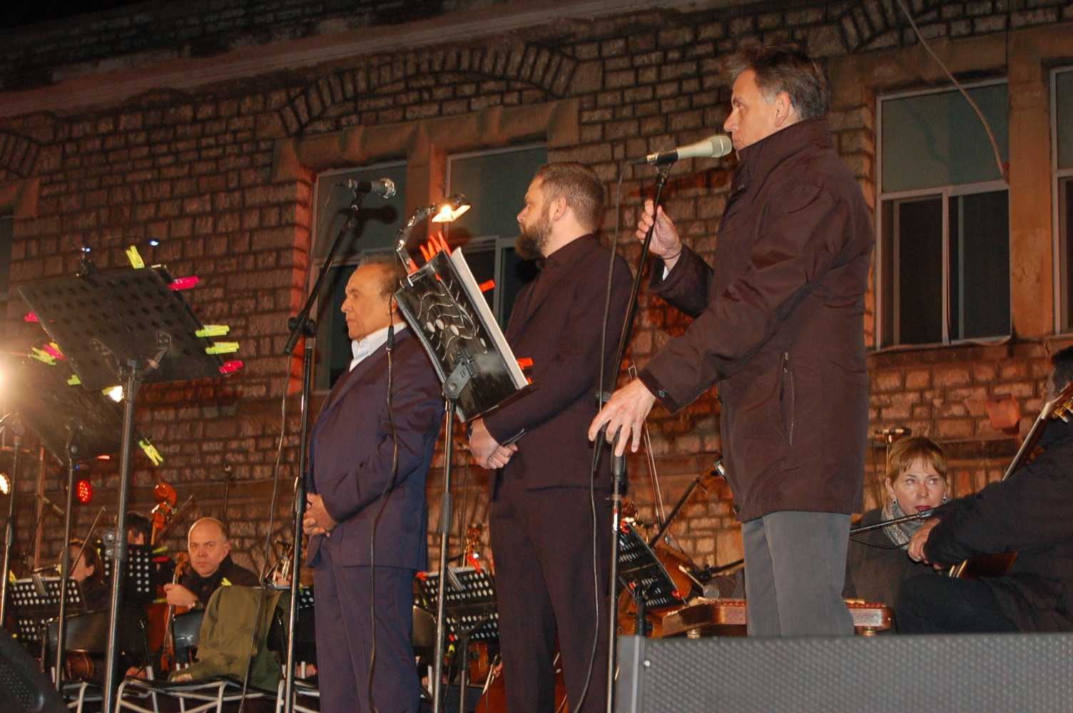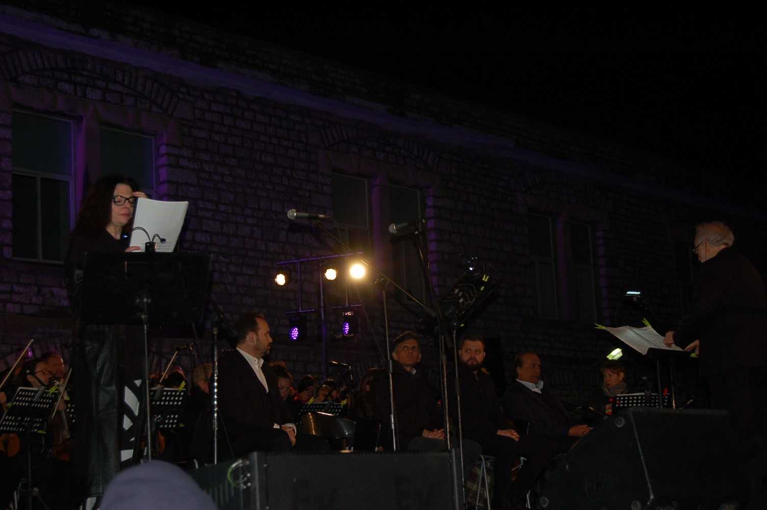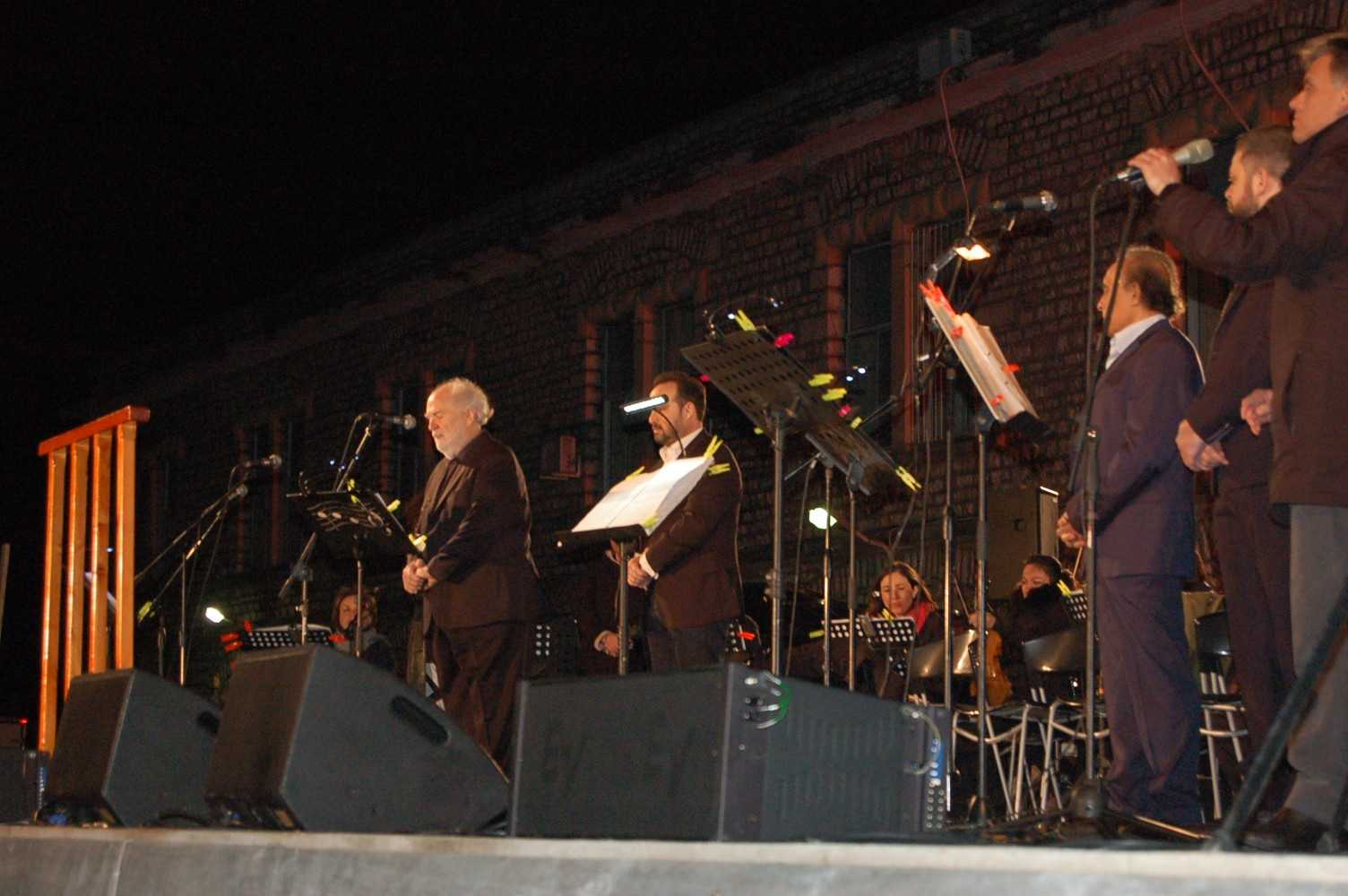 Στον κατάμεστο χώρο του 2/39 Συντάγματος Ευζώνων, ο συνθέτης παρουσίασε το μελοποιημένο από τον ίδιο έργο του Διονύσιου Σολωμού, συνοδευόμενος από τους ερμηνευτές Κώστα Μακεδόνα, Λάκη Χαλκιά, Γιώργο Ζερβάκη, Άννα Ζώη και Μανώλη Χατζημανόλη. Συμμετείχαν επίσης οι χορωδίες του Πνευματικού Κέντρου του Δήμου Ιερής Πόλης Μεσολογγίου με την καλλιτεχνική διεύθυνση του Σπύρου Χολέβα, η Πολυφωνική Χορωδία Πάτρας με καλλιτεχνικό διευθυντή τον Σταύρο Σολωμό, το Πειραϊκό Φωνητικό Σύνολο Libro Coro με την καλλιτεχνική διεύθυνση της Ανθής Γουρουντή και η Ορχήστρα «Παλίντονος».