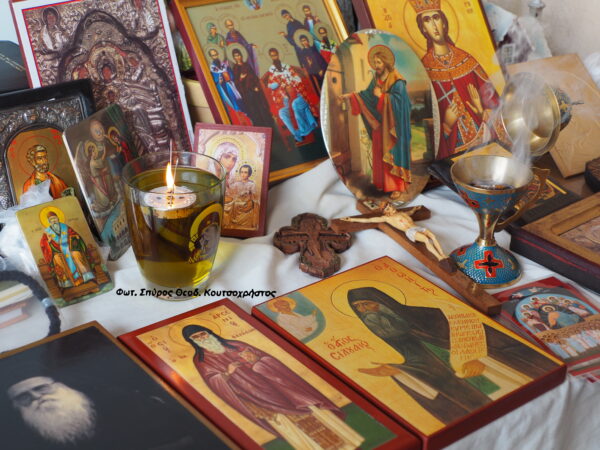 Η κ. Λαμπρινή Γ. άναψε το νέο της καντήλι και η ευωδία από το θυμιατό που μόλις είχε παραλάβει,