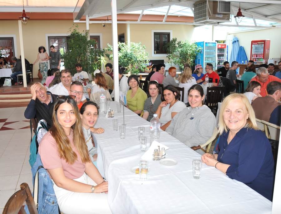 Τους νέους μας συνόδεψαν όλοι οι εργαζόμενοι, όπου μαζί με τα παιδιά, που τα εμψύχωναν και τα παρακινούσαν, πραγματοποιήθηκε με μεγάλη επιτυχία κι ενθουσιασμό η εκδρομή μας μέσα σε ένα υπέροχο φυσικό περιβάλλον δίπλα στη θάλασσα. Μετά το υπέροχο γεύμα ο χορός ξεκίνησε με τη λαογραφική ομάδα των νέων μας που χόρεψε δημοτικά παραδοσιακά τραγούδια.