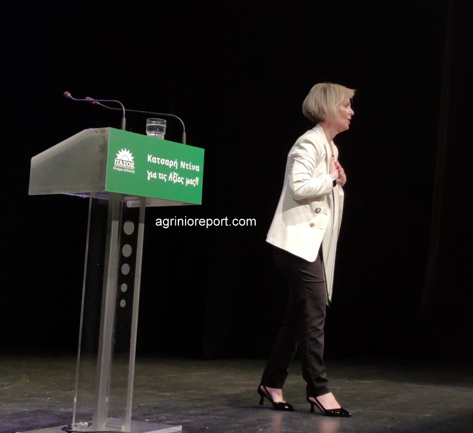 Στο ασφυκτικά γεμάτο ΔΗΠΕΘΕ Αγρινίου τόσο εσωτερικά όσο και εξωτερικά, πραγματοποίησε χθες 3 Μαϊου λίγο μετά τις 19:30, την προεκλογική της ομιλία η υποψήφια Βουλευτής του ΠΑΣΟΚ-Κίνημα Αλλαγής στην Αιτ/νία Κατσαρή Ντίνα.