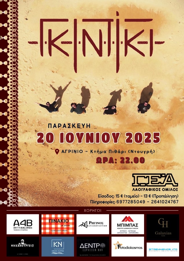 Ο Λαογραφικός Όμιλος της (Γ.Ε.Α) λοιπόν, με τους ΓΚΙΝΤΙΚΙ στο Κτήμα Πιθάρι στην θέση Ντογρή της Λίμνης Τριχωνίδας, την Παρασκευή 20 Ιουνίου 2025 και ώρα 22:00!!!