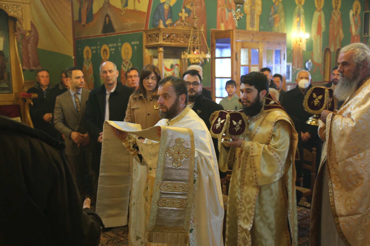 Τόν Σεβασμιώτατο πλαισίωσαν οἱ Ἱερεῖς τῆς περιοχῆς π. Παναγιώτης Σαβελώνας, Ἀρχιερατικός Ἐπίτροπος Ἁγίου Βλασίου, π. Γεώργιος Στρογγύλης, π. Νικόλαος Ἀποστολόπουλος, ὁ ἐφημέριος του χωριοῦ π. Κωνσταντῖνος Κοντογιῶργος καί ὁ Διάκονος π. Ἀντώνιος Ἀντωνιάδης. Ἔψαλλαν οἱ ἱεροψάλτες Ἰωάννης Φεγγούλης, Λεωνίδας Γαρουφαλῆς, Σπυρίδων Μέντζιος καὶ ὁ Κώστας Παππᾶς.