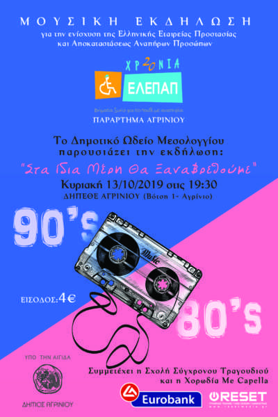 Η ΕΛΕΠΑΠ Αγρινίου και το Δημοτικό Ωδείο Μεσολογγίου παρουσιάζουν στο ΔΗΠΕΘΕ Αγρινίου την Κυριακή 13/10/2019 και ώρα 19:30 τη μουσική εκδήλωση: