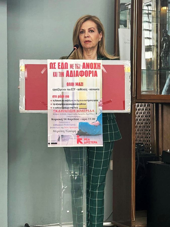 Ως εδώ με την ανοχή και την αδιαφορία’. Βασική εισηγήτρια της εκδήλωσης /ημερίδας ήταν η καθηγήτρια Παιδιατρικής-Παιδονευρολογίας στην Ιατρική Σχολή Ιωαννίνων και βουλεύτρια της Νέας Αριστεράς, Μερόπη Τζούφη.