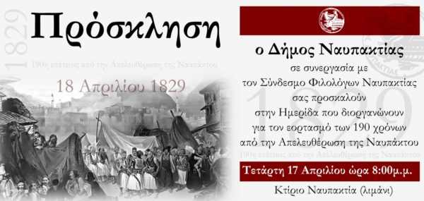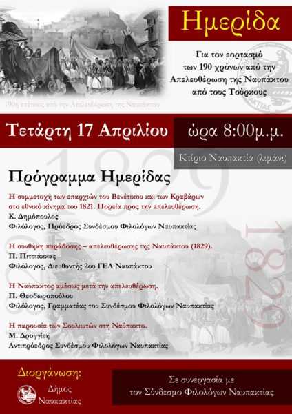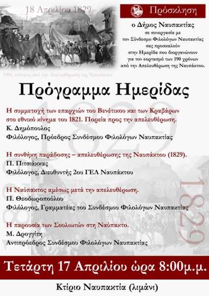Ακολουθεί αναλυτικά το πρόγραμμα της Ημερίδας για τον εορτασμό των 190 χρόνων από την απελευθέρωση της Ναυπάκτου.