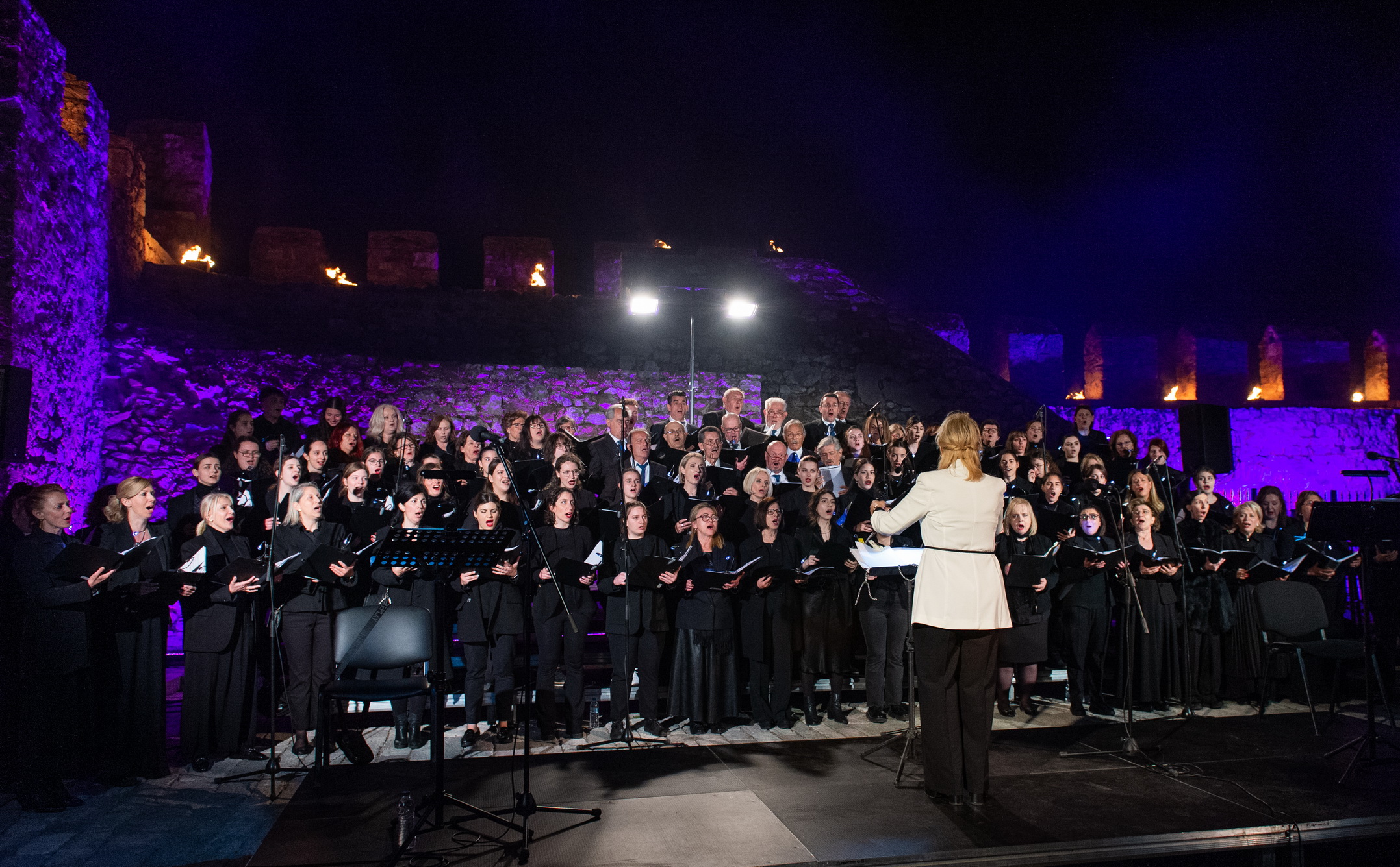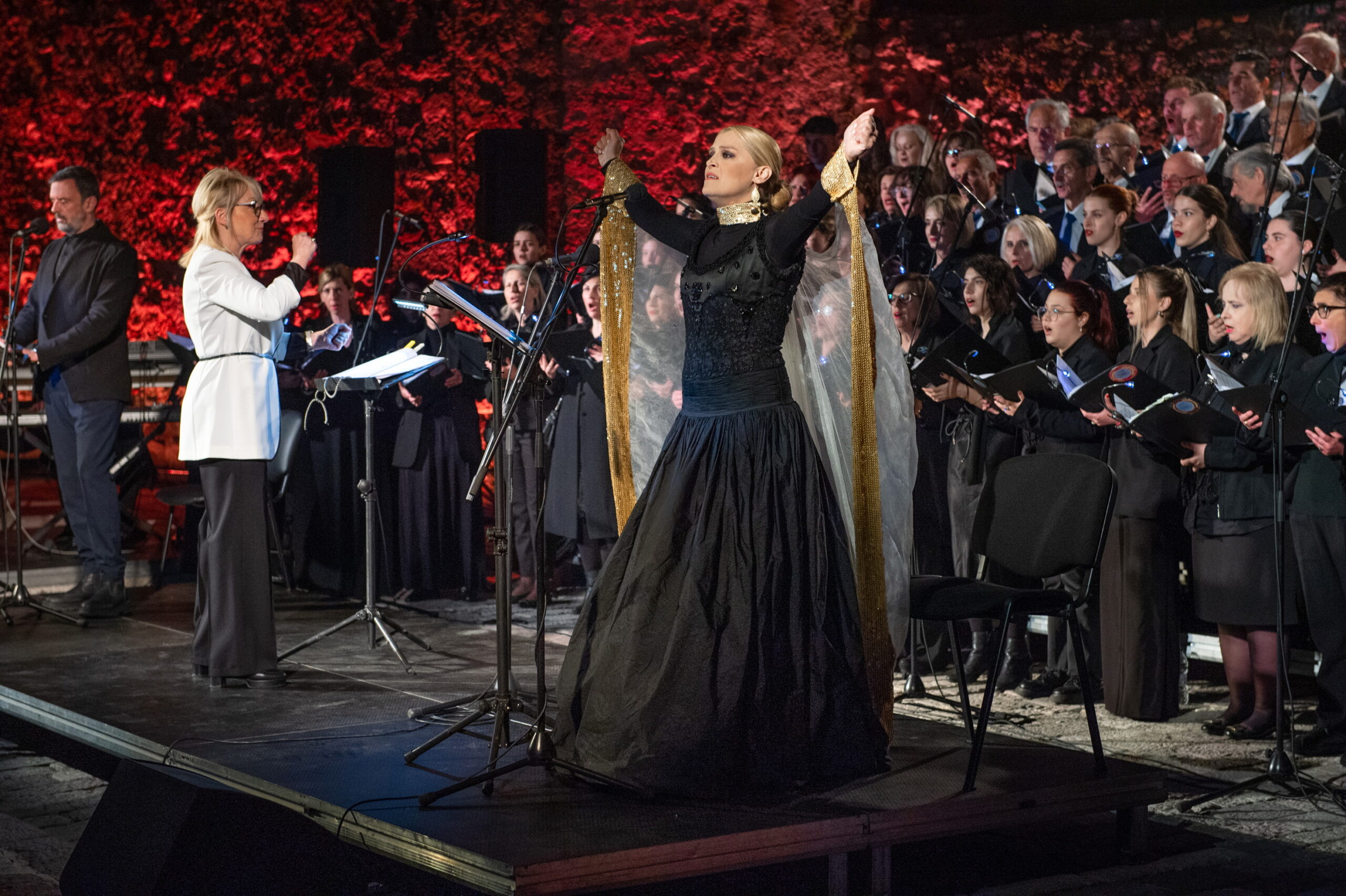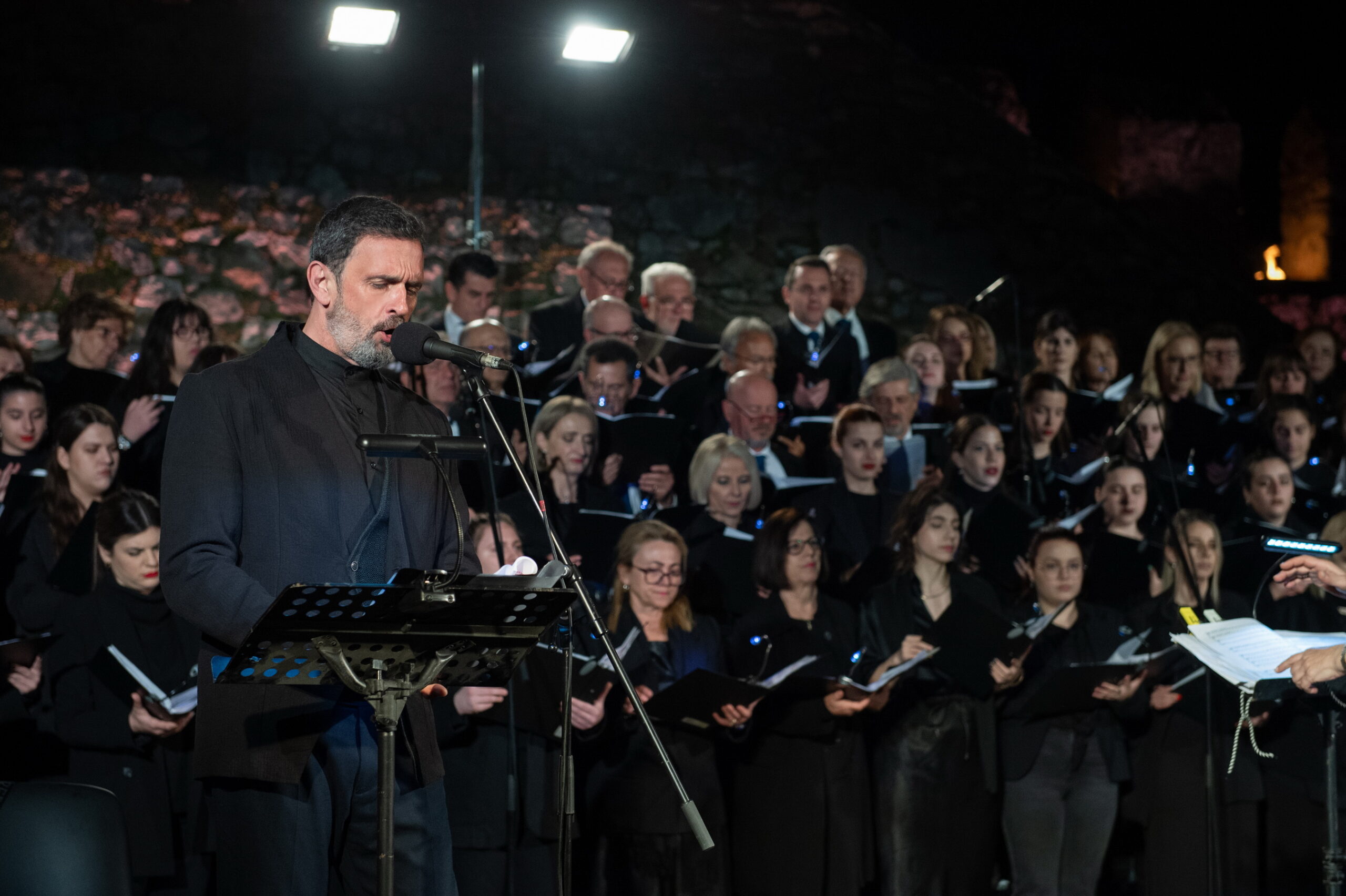 Η θρησκευτική πομπή των Επιταφίων των δύο κεντρικών Ενοριών, του Ιερού Μητροπολιτικού Ναού Αγίου Δημητρίου και του Ιερού Ναού Αγίας Παρασκευής, συνοδεία της Παπαχαραλαμπείου Δημοτικής Φιλαρμονικής, καταλήγει στο Ενετικό Λιμάνι της πόλης, όπου δεκάδες αναμμένες δάδες έχουν τοποθετηθεί στις πολεμίστρες, ο φλεγόμενος σταυρός στέκει επιβλητικός στην είσοδο του Λιμανιού και η ατμόσφαιρα κυριαρχείται από τους Ύμνους της Ημέρας, που ερμηνεύονται από τη Μικτή Χορωδία Ναυπάκτου. Φέτος, η Μικτή Χορωδία Ναυπάκτου συνέπραξε με τη Μικτή Χορωδία Cantelena υπό τη διεύθυνση της μαέστρου, Ελένης Παπαδοπούλου-Αραβαντινού. Σολίστ η καταξιωμένη υψίφωνος Τζίνα Φωτεινοπούλου, συμμετείχαν οι πιανίστες Ηλίας Καλούδης και Γιώργος Κονής, ενώ στην αφήγηση και την απαγγελία ήταν ο ηθοποιός Λεωνίδας Κακούρης.