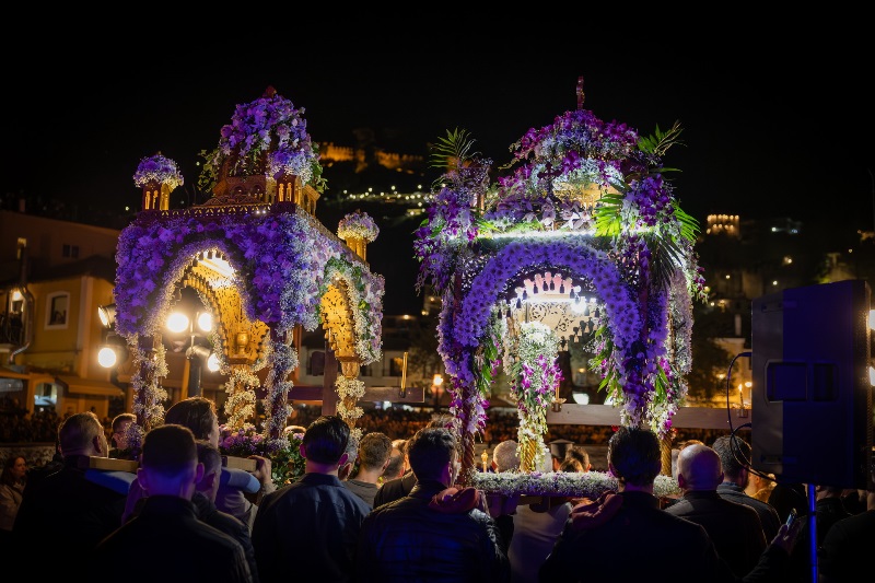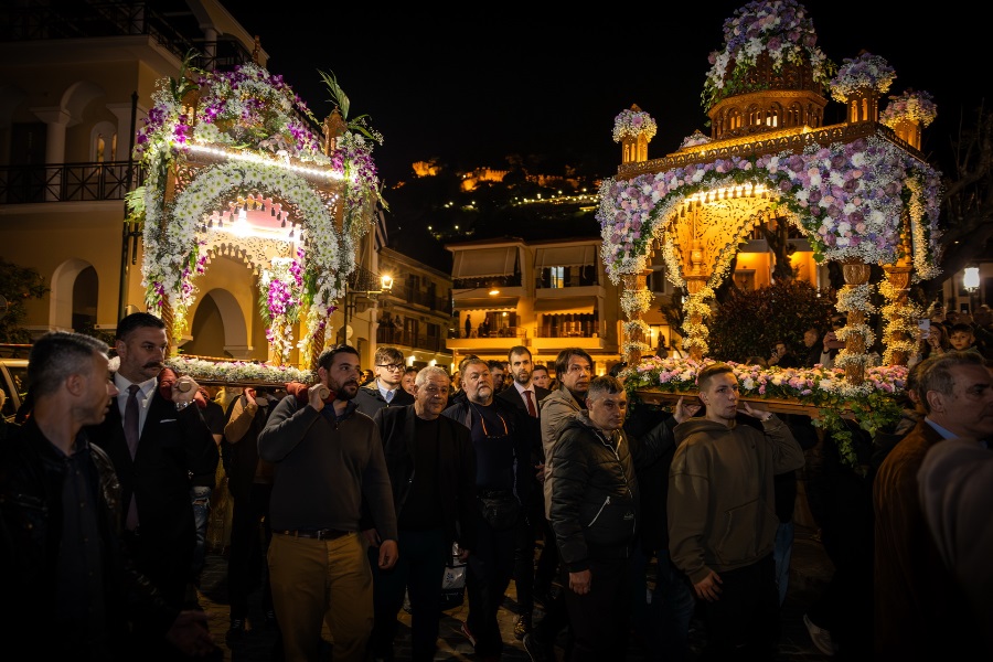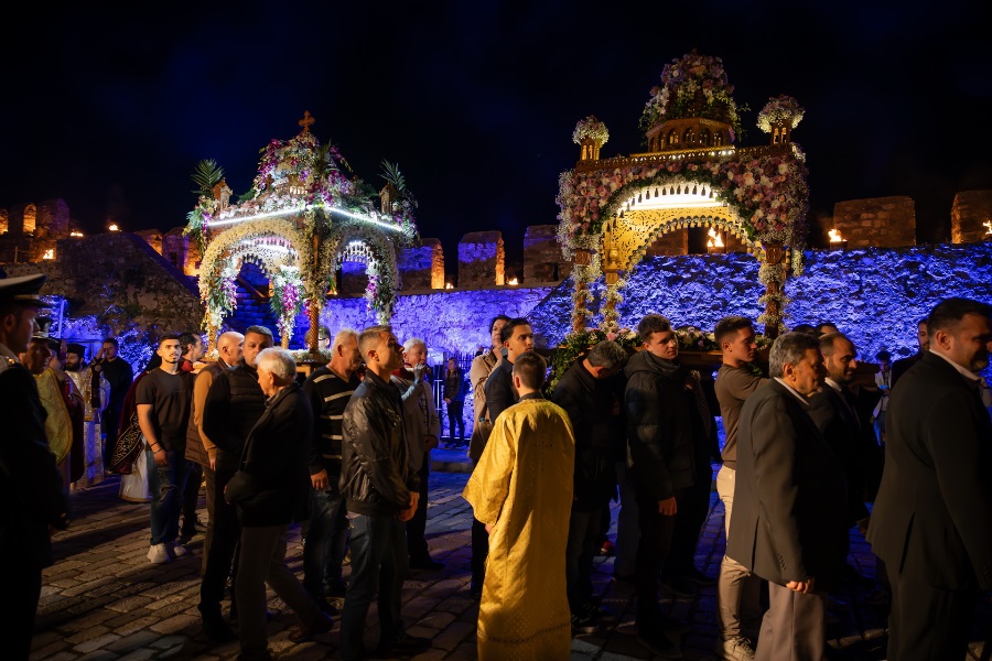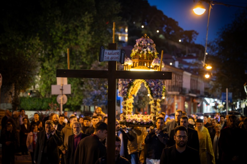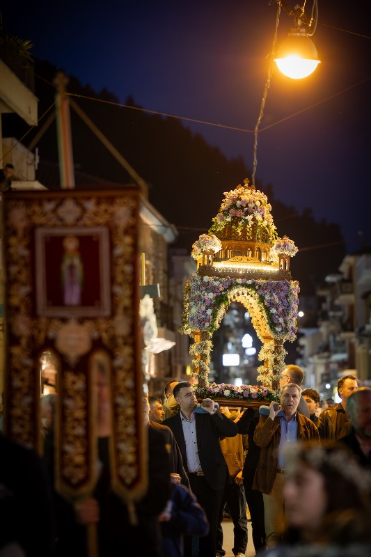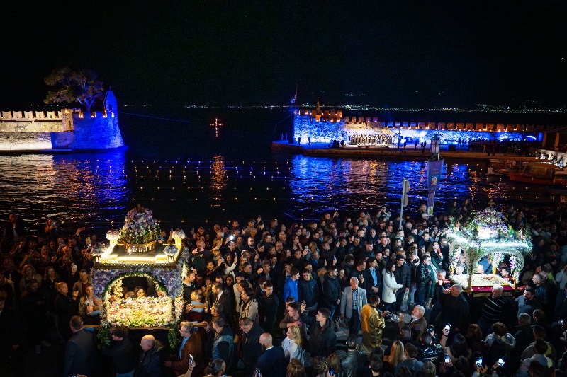 Χιλιάδες επισκέπτες κατέκλυσαν τη Ναύπακτο το βράδυ της Μεγάλης Παρασκευής, συμμετέχοντας σε ένα από τα πιο ιδιαίτερα τελετουργικά της Περιφοράς των Επιταφίων.