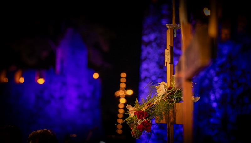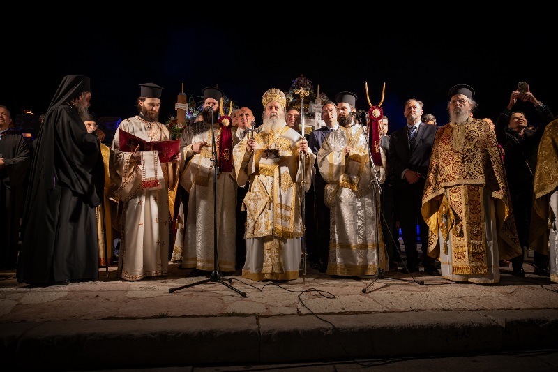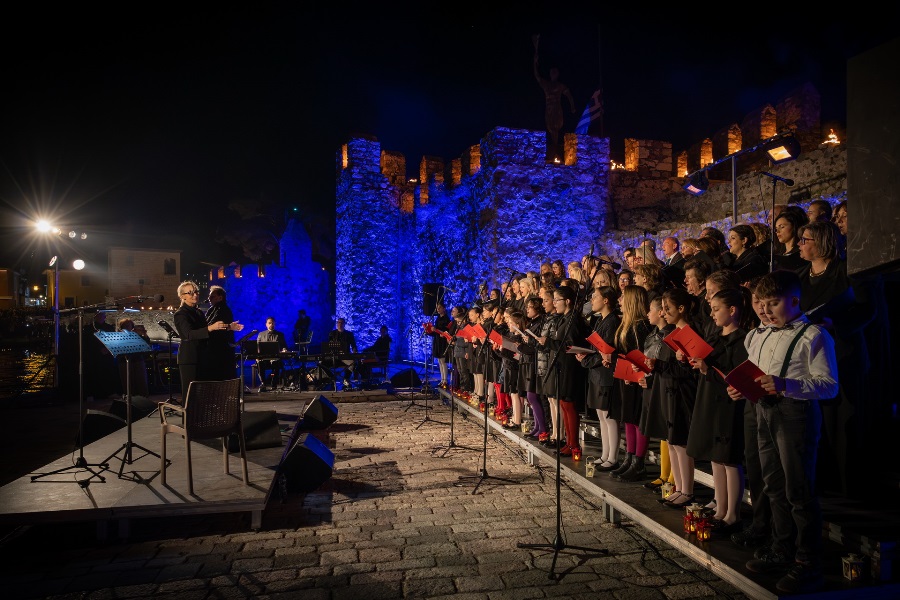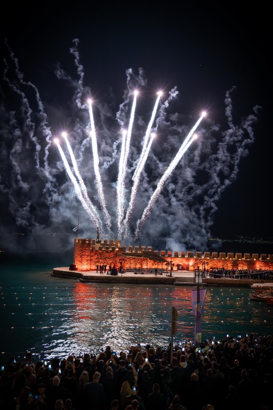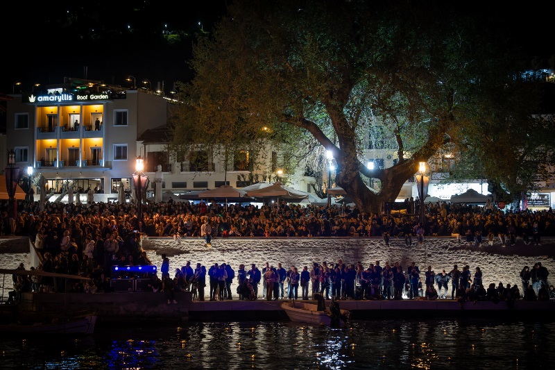 Το Ενετικό Λιμάνι μεταμορφώθηκε σε ένα σκηνικό σπάνιας ομορφιάς και συγκίνησης, με τις πολεμίστρες να φωτίζονται από δεκάδες αναμμένες δάδες και τον φλεγόμενο σταυρό στην είσοδο να δημιουργεί μία εικόνα που δύσκολα ξεχνιέται.