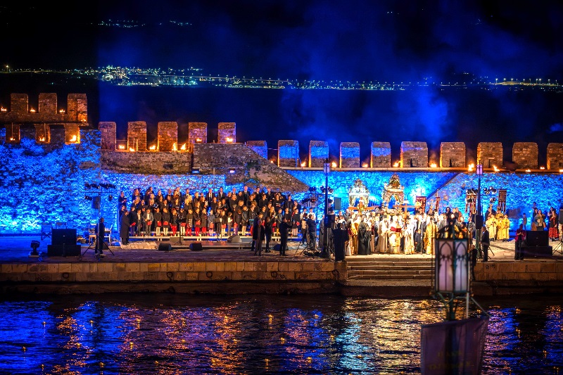 Οι Επιτάφιοι των δύο κεντρικών Ενοριών της πόλης, του Ιερού Μητροπολιτικού Ναού Αγίου Δημητρίου και του Ιερού Ναού Αγίας Παρασκευής, συναντήθηκαν και σχημάτισαν ενιαία πομπή, η οποία κατέληξε στο Ενετικό Λιμάνι. Εκεί τελέστηκε κοινή δέηση, χοροστατούντος του Επισκόπου Κερνίτσης κ.κ.Χρυσάνθου. Την πομπή συνόδευσε η Παπαχαραλάμπειος Δημοτική Φιλαρμονική Ναυπάκτου, ενώ η Μικτή Χορωδία Ναυπάκτου παρουσίασε το λαϊκό ορατόριο «Ύμνοι Αγγέλων σε Ρυθμούς Ανθρώπων» του Σταύρου Κουγιουμτζή, σε στίχους του Ντίνου Χριστιανόπουλου, και απέδωσε τα Εγκώμια της Μεγάλης Παρασκευής, υπό τη διεύθυνση της μαέστρου Ελένης Παπαδοπούλου-Αραβαντινού. Στο φετινό τελετουργικό συμμετείχαν ο σολίστ τενόρος Αντώνης Κορωναίος, οι μουσικοί Ηλίας Καλούδης και Γιώργος Κονής, καθώς και η Παιδική-Νεανική Χορωδία Ναυπάκτου, ενώ στην απαγγελία συμμετείχε η ηθοποιός Φιλαρέτη Κομνηνού.