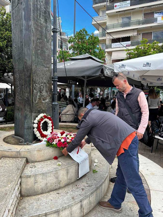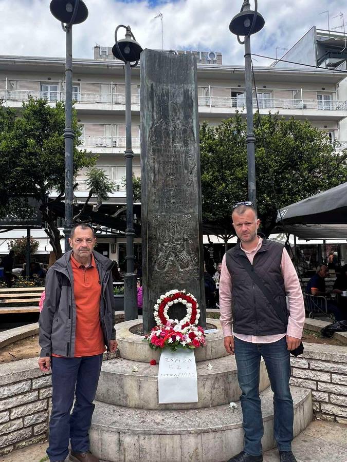 Αντιπροσωπεία της Νομαρχιακής Επιτροπής Αιτωλοακαρνανίας του ΣΥΡΙΖΑ – Προοδευτική Συμμαχία , αποτελούμενη από τον Γραμματέα Γιώργο Ξενάκη και το μέλος της Γραμματείας Αλέξανδρο Ρήγα, κατέθεσαν το πρωί της Μ. Παρασκευή στεφάνι στο μνημείο των τριών απαγχονισθέντων πατριωτών, την Μ. Παρασκευή του 1944, στην πλατεία Δημοκρατίας.