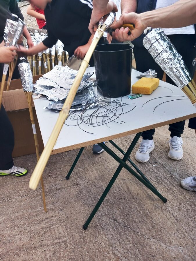 Την Κυριακή λοιπόν, τρείς εβδομάδες πριν την Μεγάλη Εβδομάδα, η ανυπομονησία των παιδιών να ¨μαυρίσουν¨ τα χέρια τους , φτιάχνοντας τις εκατοντάδες δάδες, έφτασε στο τέλος της. Οι δάδες βγήκαν και φέτος από τα κουτιά τους και μαζί τους τα χαμόγελα… Αφού λάβουν τις απαραίτητες διορθώσεις από τους εθελοντές, θα αναμένουν τον άναμμα τους στην περιφορά, στολίζοντας την διαδρομή και δημιουργώντας ένα μοναδικό σκηνικό στην γραφική Σπολάιτα.