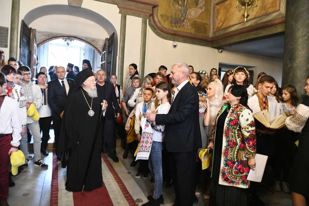 Αμέσως μετά, τα παιδιά τραγούδησαν ένα παραδοσιακό ουκρανικό τραγούδι και προσέφεραν δώρα που έφτιαξαν τα ίδια για τον Πατριάρχη, ο οποίος τα ευλόγησε και ευχήθηκε να προοδεύουν και να ζουν πάντοτε σε ειρήνη. «Είμαστε πολύ κοντά στον Θεό και πρέπει να παραμείνουμε», προέτρεψε πατρικώς τα παιδιά ο Παναγιώτατος.