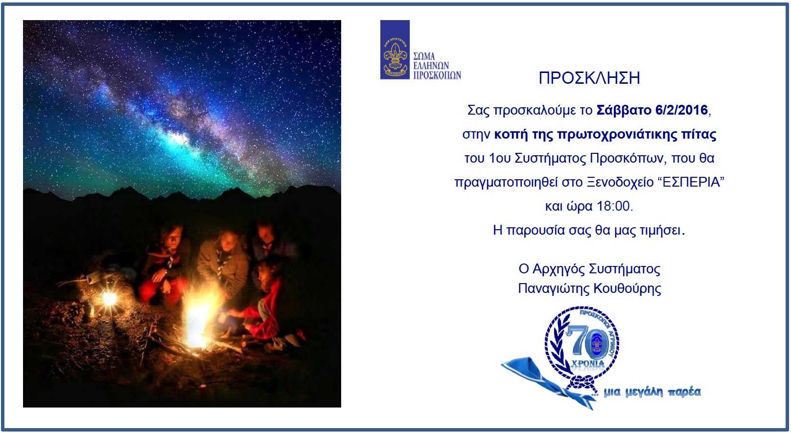 Την κοπή της Πρωτοχρονιάτικης πίτας θα κόψουν οι Πρόσκοποι το Σάββατο 8 Φεβρουαρίου.