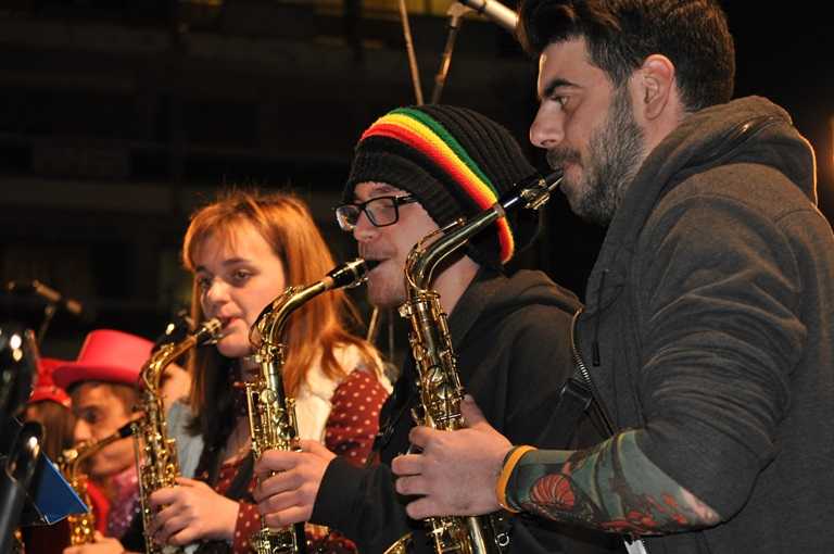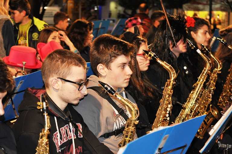 Η Φιλαρμονική του Δήμου Αγρινίου παιάνιζε στους κεντρικούς δρόμους της πόλης σε αποκριάτικους ρυθμούς.