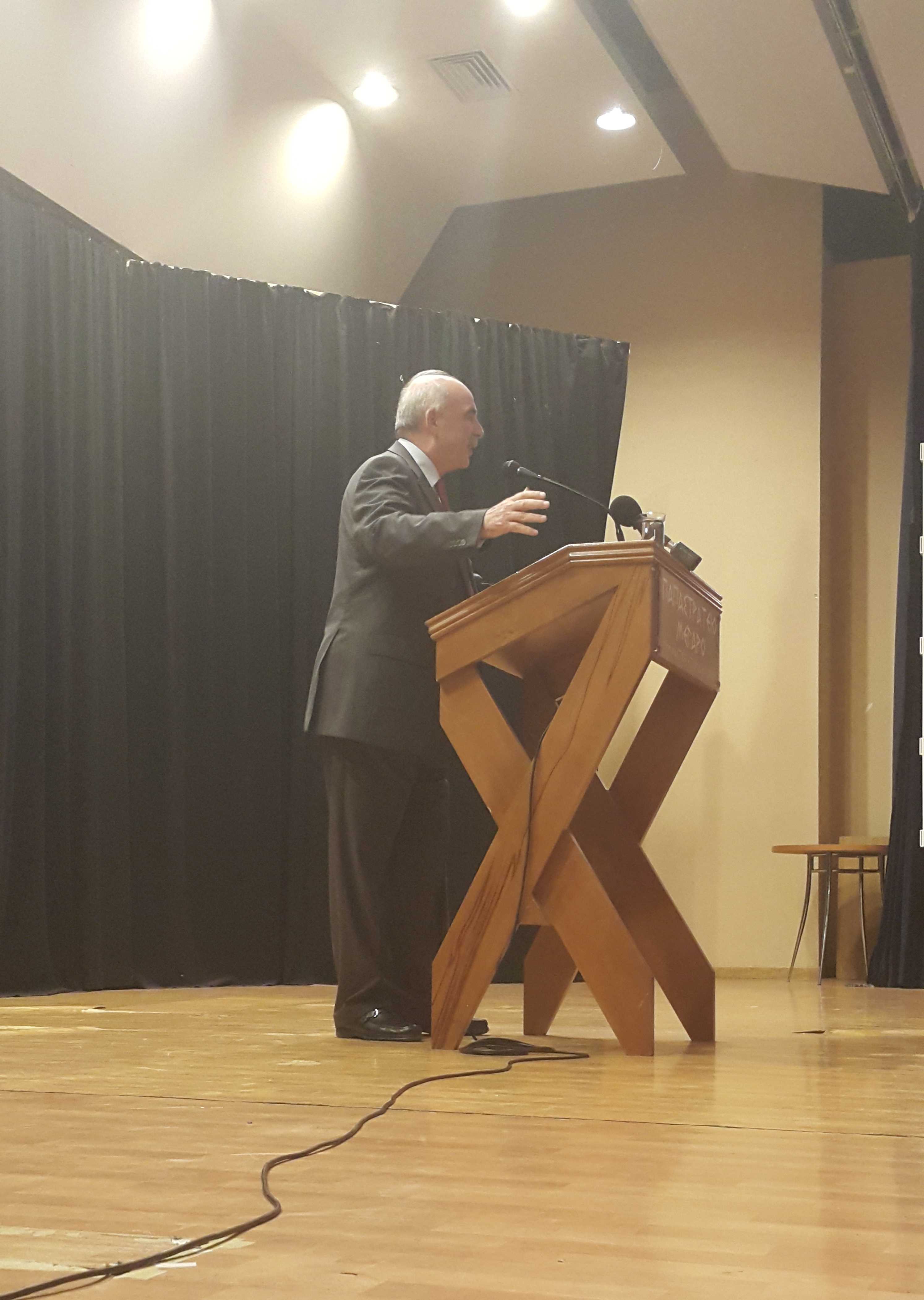 Στο δημαρχείο παραβρέθηκαν αντιδήμαρχοι αλλά και δημοτικοί σύμβουλοι. Το Μέγαρο γέμισε από κόσμο που ήρθε να ακούσει την ομιλία του υποψήφιου προέδρου. Στην έναρξη της ομιλίας του ο κ. Μειμαράκης αναφέρθηκε στην κυβέρνηση και στα μέχρι τώρα λάθη που έχει κάνει συγκρίνοντας της κινήσεις της με αυτά που εξήγγειλε η νέα Δημοκρατία. Αναφέρθηκε συγκεκριμένα στην δημιουργία θέσεων εργασίας μέσα από την εκπόνηση έργων αλλά και στις μεγάλες αποκρατικοποιήσεις όπως είναι η παραχώρηση των αεροδρομίων. Όλα αυτά σύμφωνα με τον κ. Μειμαράκη αποδεικνύουν πως η χώρα νοικοκυρεύεται και πως οι επενδυτές μπορούν να έρθουν στην Ελλάδα.