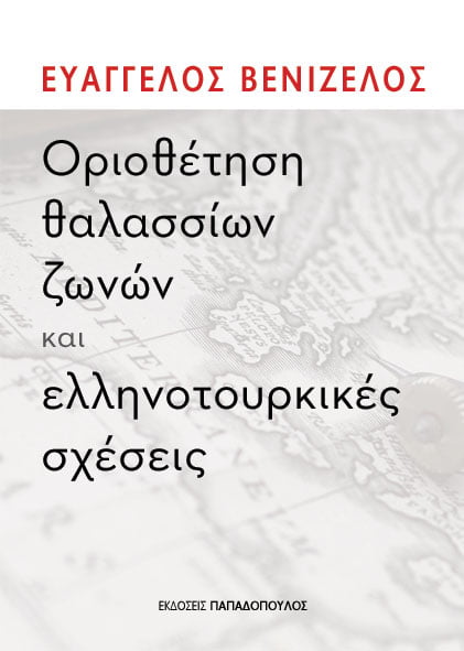 Από τις Εκδόσεις Παπαδόπουλος κυκλοφορεί μια συλλογή κειμένων του Ευάγγελου Βενιζέλου, πρώην Υπουργού Εξωτερικών και πρώην Αντιπροέδρου της Κυβέρνησης, με κεντρικό άξονα την οριοθέτηση των θαλασσίων ζωνών και τις ελληνοτουρκικές σχέσεις.