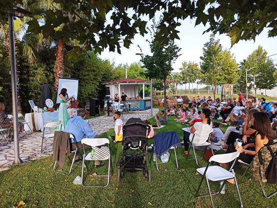 Μετά τον εξαιρετικό πρόλογο της Ευαγγελίας, τον λόγο πήρε η εκπαιδευτικός της Α’ τάξης του 17ου Δημοτικού Σχολείου, Ελένη Μάντζιου για να μιλήσει για την πορεία «από την ανάγνωση στη δημιουργική γραφή». Η Ελένη χαιρέτησε τους γονείς, τα παιδιά και τους φίλους της συγγραφέως και με την εγκάρδια ομιλία της μοιράστηκε με το κοινό τη δυνατή σχέση που γεννήθηκε ανάμεσα σε αυτή και τη συγγραφέα και οδήγησε 40 μαθητές του Δημοτικού σχολείου στη φιλαναγνωσία και στη δημιουργική γραφή «εκπαιδεύοντας τους συγγραφείς του τώρα».