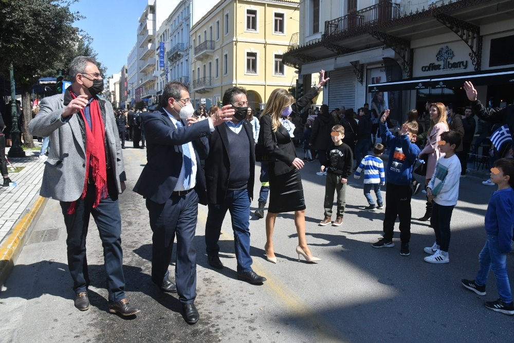 Ο Δήμαρχος Πατρέων, Κώστας Πελετίδης, στα πλαίσια του εορτασμού της επετείου της Ελληνικής Επανάστασης του 1821, παρέστη, σήμερα το πρωί, στη Δοξολογία που έγινε στο Μητροπολιτικό Ναό της Ευαγγελιστρίας και στη συνέχεια παρακολούθησε τη μαθητική και στρατιωτική παρέλαση, που έγινε στην οδό Αγίου Ανδρέου.