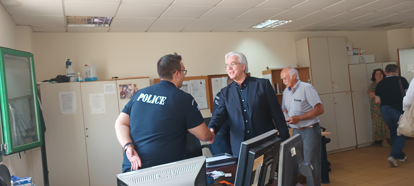 Στη συνέχεια μετέβη στο Αστυνομικό Μέγαρο Αγρινίου όπου είχε συνάντηση με αστυνομικούς, τον υποδιευθυντή της Διεύθυνσης Αστυνομίας Ακαρνανίας κ. Κωνσταντίνο Σπυρόπουλο καθώς και το Διοικητή της Τροχαίας Αγρινίου κ. Αλέξη Αντωνίου και περιηγήθηκε στο επιτελείο της Διεύθυνσης Αστυνομίας Ακαρνανίας και τις λοιπές μάχιμες υπηρεσίες.