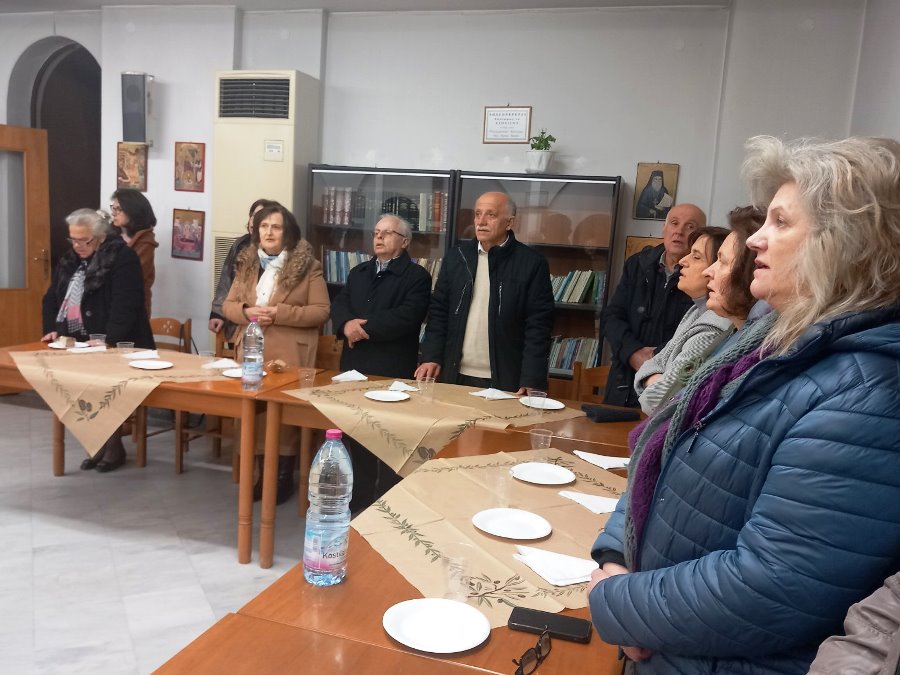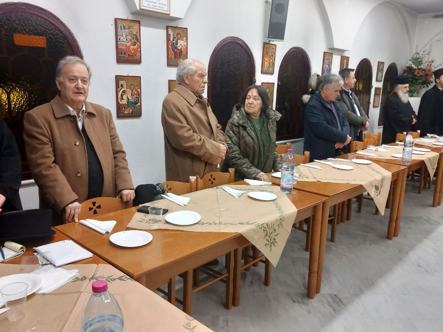 Ακολούθως στο πνευματικό κέντρο του Ναού πραγματοποιήθηκε η καθιερωμένη κοπή της βασιλόπιττας, όπου ο πρόεδρος Σπυρίδων Παπαθανασίου ευχήθηκε στους παρισταμένους για το νέο έτος και για την εορτή των Τριών Ιεραρχών, τη γιορτή των Γραμμάτων και της ελληνορθόδοξης παιδείας. Τέλος ευχαρίστησε τους ιερείς του ναού και όλους τους διακονούντες σ’ αυτόν για την  πολύ ωραία φιλοξενία τους.