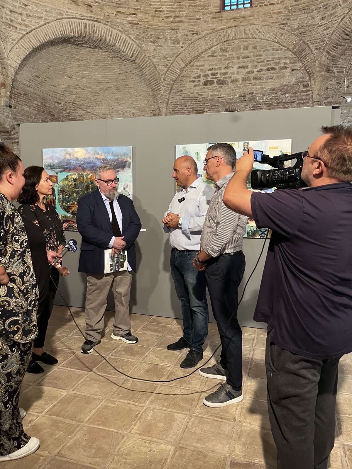Ο καλλιτέχνης για τις ανάγκες της Έκθεσής του, την οποία είχε εγκαινιάσει προσωπικά η Υπουργός Πολιτισμού κ.Λίνα Μενδώνη, βυθίστηκε στη μακραίωνη ιστορία της Ναυπάκτου και φιλοτέχνησε δυο νέα έργα για την καστροπολιτεία του Κορινθιακού Κόλπου: την περίφημη Ναυμαχία της Ναυπάκτου (7 Οκτωβρίου 1571) και την Απελευθέρωση της Ναυπάκτου (18 Απριλίου 1829).