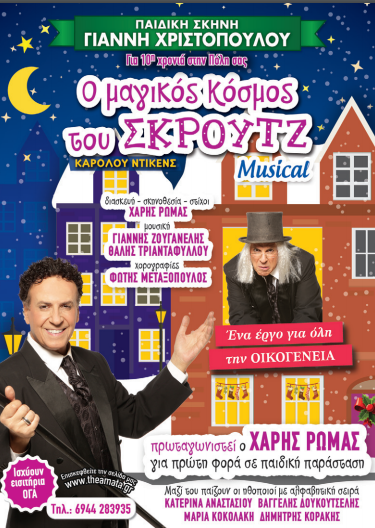 Στο γνωστό έργο του Καρόλου Ντίκενς, “Ο Μαγικός Κόσμος του Σκρουτζ”. Η παράσταση θα ανέβει το Σάββατο 26 Δεκεμβρίου και ώρες 12.00μ. & 6.00μ.μ. στο Δημοτικό Θέατρο Αγρινίου.