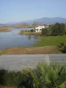 «Οικισμός Συκιάς στη λίμνη Λυσιμαχία. Το νερό φτάνει πλέον δίπλα σε σπίτια και μέσα ιδιοκτησίες, απειλώντας περίπου 8.500 στρέμματα ιδιωτικής γης.