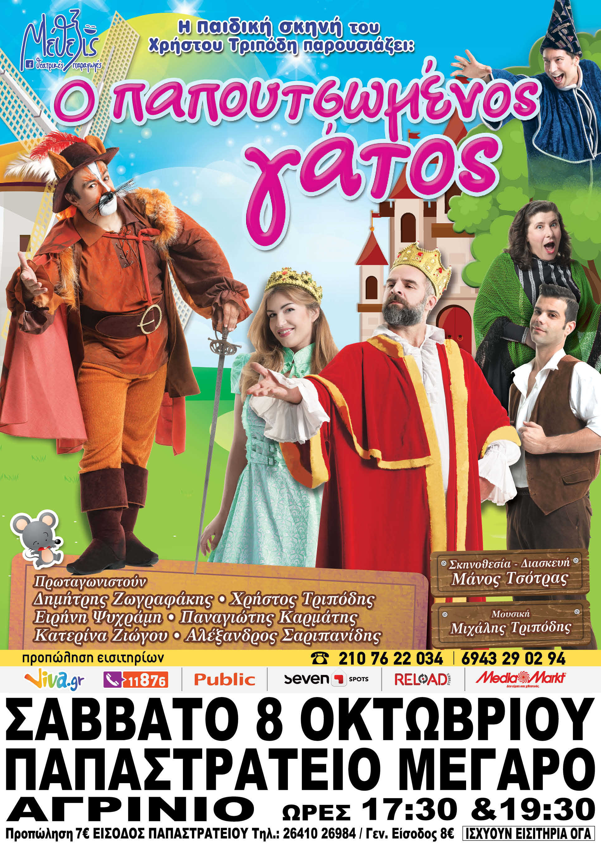Μια διαδραστική παράσταση, που δίνει την ευκαιρία στα παιδιά να βοηθήσουν τον παπουτσωμένο γάτο να φέρει εις πέρας το σχέδιο του. Ένα σχέδιο πολύ δύσκολο, αφού πρέπει να μετατρέψει το φτωχό αφεντικό του, το Γιωργάκη σε πρίγκιπα μέσα σε τρεις ημέρες. Ο μόνος τρόπος είναι να ερωτευθεί η πριγκίπισσα τον Γιωργάκη. Θα τα καταφέρει να μετατρέψει και να βελτιώσει τη ζωή του μυλωνά;