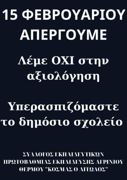 Οι εκπαιδευτικοί λέμε ΟΧΙ στην αξιολόγηση και την κατηγοριοποίηση σχολείων, εκπαιδευτικών και μαθητών/τριών.