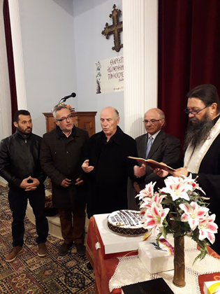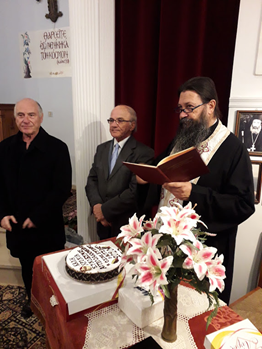 Το τελετουργικό κοπής της βασιλόπιτας ευλόγησε ο πρωτοπρεσβύτερος του Ιερού Ναού Παμμεγίστων Ταξιαρχών Αιτωλικού και Αντιπρόεδρος του Συνδέσμου μας π. Ανδρέας Μπότας.