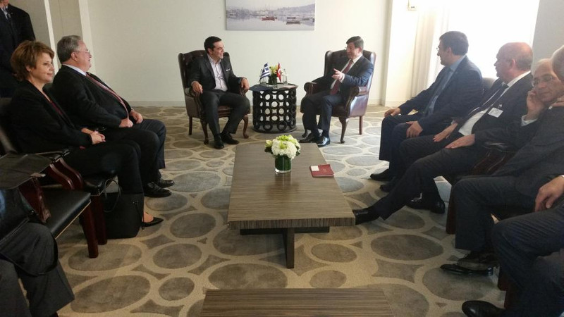 Στις 21.30 συναντήθηκε με τον Πρωθυπουργό της Τουρκίας Ahmed Davudoğlu στην οποία συζήτησαν τις ελληνοτουρκικές σχέσεις, αλλά και θέματα προσφυγικών ροών και ενεργειακά.
