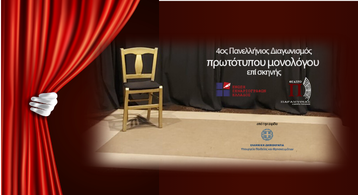 Η Ένωση Σεναριογράφων Ελλάδος η οποία, καθιέρωσε τον Πανελλήνιο Διαγωνισμό Συγγραφής και Ερμηνείας Πρωτότυπων Μονολόγων (15 λεπτών) επί Σκηνής ως ετήσια πανελλήνια πολιτιστική εκδήλωση προκηρύσσει τον τέταρτο (4ο) προσκαλώντας τους θιασώτες του ιδιαίτερου αυτού θεατρικού είδους, από όλη την Επικράτεια αλλά και το εξωτερικό, να προσέλθουν και να παρουσιάσουν το έργο τους στον 4ο Πανελλήνιο Διαγωνισμό Συγγραφής και Ερμηνείας Πρωτότυπων Μονολόγων επί Σκηνής.