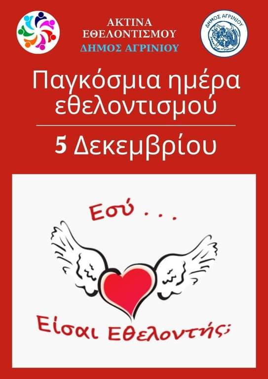 Η Ακτίνα Εθελοντισμού του Δήμου Αγρινίου τιμά τη σημερινή ημέρα ευχαριστώντας όλους τους εθελοντές του Δήμου για τη συνεχή προσφορά στο συνάνθρωπό τους.