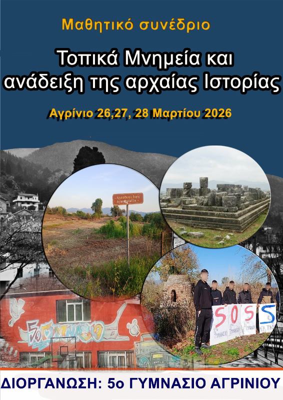 Το 5ο Γυμνάσιο Αγρινίου με την υπ.αριθ. 15η/6-10-2025 απόφαση του Συλλόγου Διδασκόντων προτίθεται να υλοποιήσει Πανελλήνιο μαθητικό Συνέδριο στις 26, 27 και 28 Μαρτίου 2026 στο Αγρίνιο με θέμα : “Τοπικά Μνημεία και ανάδειξη της αρχαίας Ιστορίας”.