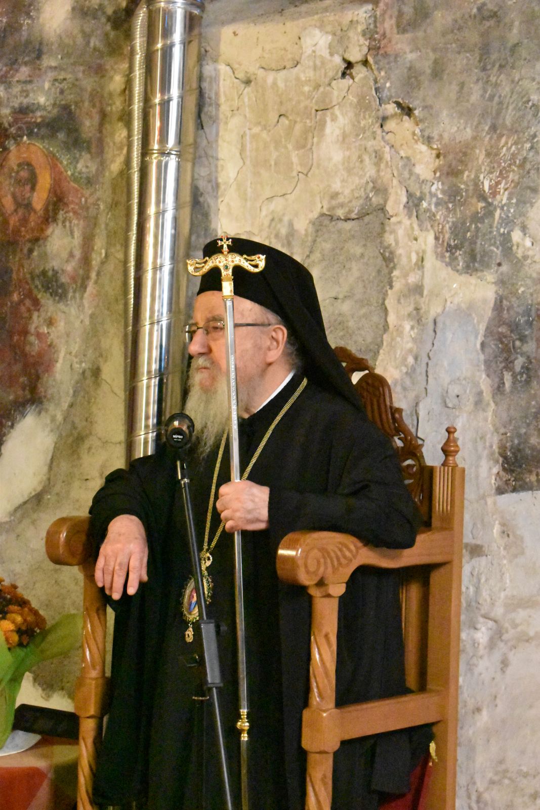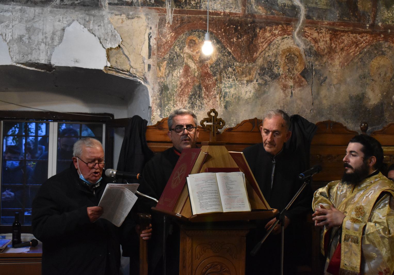 Στο τέλος του Εσπερινού ο Σεπτός Ποιμενάρχης κ.Κοσμάς, αναφέρθηκε στην υπό εξέλιξη ανακαίνιση της Ιεράς Μονής.