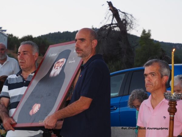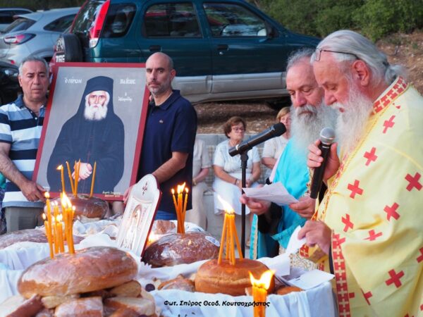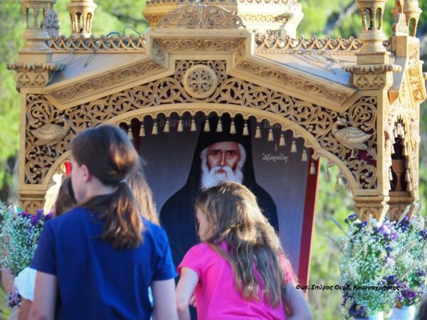 Δίπλα από την Ιερά Μονή Αγίων Νηπίων, ο Ιερός Ναός και παιδάκια με τις μητέρες τους, έψαλαν το Απολυτίκιο του Οσίου Παϊσίου.