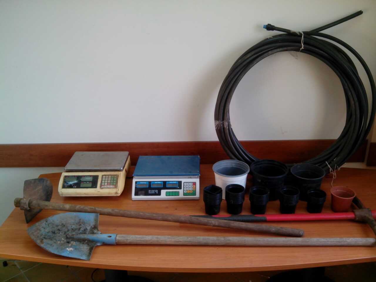 Στο χώρο της φυτείας οι αστυνομικοί βρήκαν και κατέσχεσαν δύο φτυάρια, μια αξίνα , διάφορα πλαστικά δοχεία και πλαστικά γλαστράκια, ως μέσα για τη δημιουργία φυτωρίου των δενδρυλλίων κάνναβης και της μετέπειτα καλλιέργειας και περιποίησης τους.