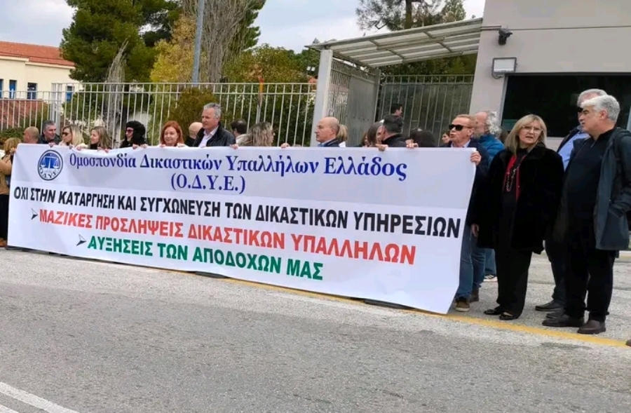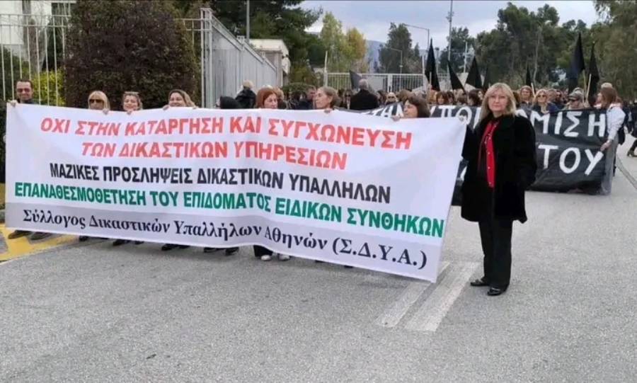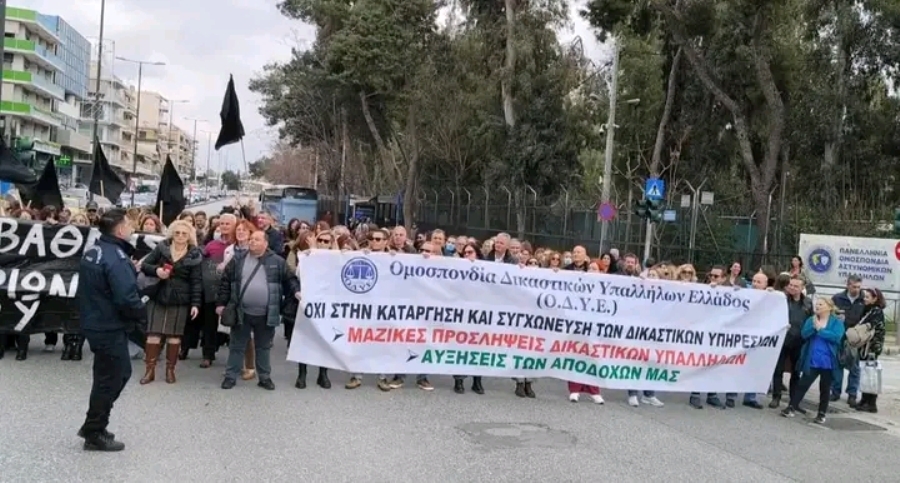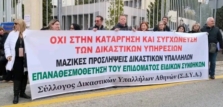 Παράσταση διαμαρτυρίας είχαν οι δικαστικοί υπάλληλοι που πλήττονται από τον δικαστικό χάρτη. Οι δικαστικοί υπάλληλοι διαμαρτυρήθηκαν μπροστά από το Υπουργείο Δικαιοσύνης ενώ αντιπροσωπεία τους είχε συνάντηση με τον γενικό γραμματέα του υπουργείου δικαιοσύνης.