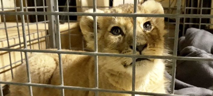 Το λιονταράκι είναι περίπου 2,5 μηνών και μεταφέρθηκε σε καταφύγιο για ζώα. Είναι σε καλή κατάσταση, αν και ο κτηνίατρος που το εξέτασε διαπίστωσε γενική αδυναμία και ένα πρόβλημα κίνησης στα πίσω πόδια του.