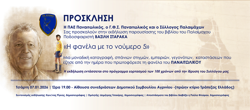 Παρουσίαση του βιβλίου “Η φανέλα με το νούμερο 5” του παλαίμαχου ποδοσφαιριστή Βασίλη Σταρακά