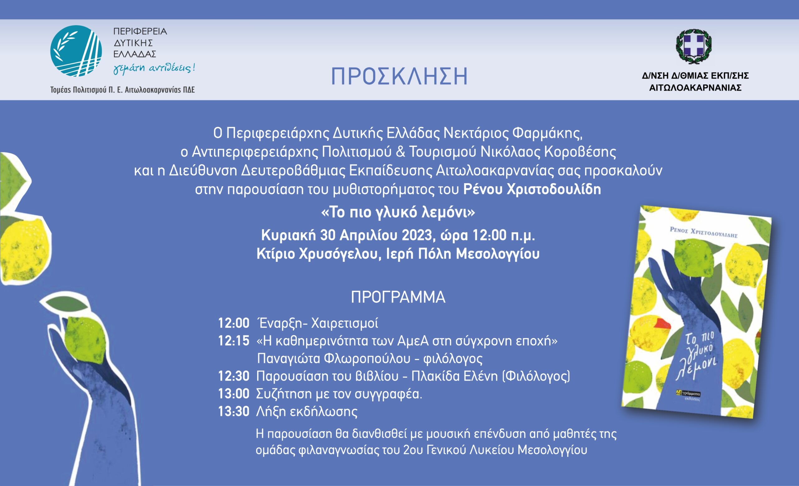 Παρουσίαση του βιβλίου “Το πιο Γλυκό λεμόνι” του Ρένου Χριστοδουλίδη