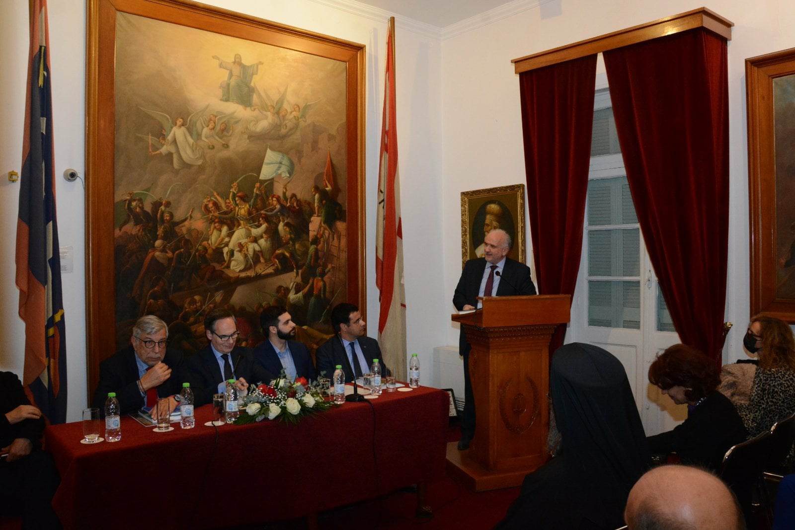 Σύντομο χαιρετισμό στην εκδήλωση απηύθυνε ο Σεβασμιώτατος Μητροπολίτης Αιτωλίας και Ακαρνανίας κ.κ. Δαμασκηνός ενώ για το βιβλίο μίλησαν οι κκ. Στέλιος Περράκης, Ομότιμος Καθηγητής Διεθνών και Ευρωπαϊκών Θεσμών Παντείου Πανεπιστημίου, πρώην Πρέσβυς της Ελλάδος στο Συμβούλιο της Ευρώπης Παναγιώτης Ράππας, Σκηνοθέτης-Ζωγράφος και Κωνσταντίνος Μπεράτης, Πολιτικός Επιστήμονας, Ερευνητικός Εταίρος στην Συμβουλευτική Εταιρεία Guidepoint.