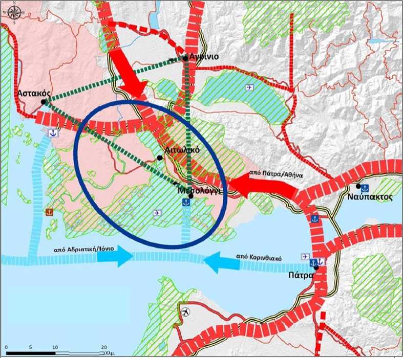 Το αναπτυξιακό τρίπολο της Περιφερειακής Ενότητας Αιτωλοακαρνανίας συμπεριλαμβάνει Αγρίνιο – Μεσολόγγι και Αστακό, με συγκριτικά πλεονεκτήματα στο διαμετακομιστικό εμπόριο, στον ειδικό και εναλλακτικό τουρισμό και με δυνατότητες εξειδίκευσης στη βιολογική γεωργία και κτηνοτροφία.