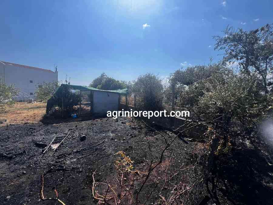 Η φωτιά έκαψε 3 στέμματα, ξερά χόρτα, ελιές, ένα ξύλινο παράπηγμα με ελαιόπανα και πλαστικά τελάρα, λάστιχα ποτίσματος και ένα Ι.Χ. υπέστη ελαφρώς ζημιές στα εμπρόσθια πλαστικά του λόγω αυξημένης θερμοκρασίας στο σημείο όπυ ήταν σταθμευμένο.
