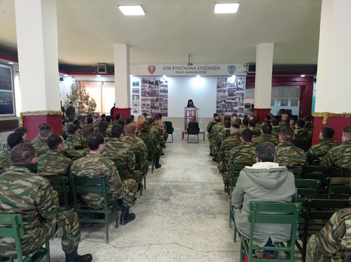 Το 2/39 Σύνταγμα Ευζώνων στην Ιερά Πόλη Μεσολογγίου επισκέφθηκε την Παρασκευή 22 Δεκεμβρίου 2023 ο Σεβασμιώτατος Μητροπολίτης Αιτωλίας και Ακαρνανίας κ. Δαμασκηνός, ο οποίος έγινε δεκτός από τον Ανώτερο Διοικητή Φρουράς Ιεράς Πόλεως Μεσολογγίου, ΑΝΧΗ (ΠΖ) κ. Παντελεήμονα Μπετσιά.