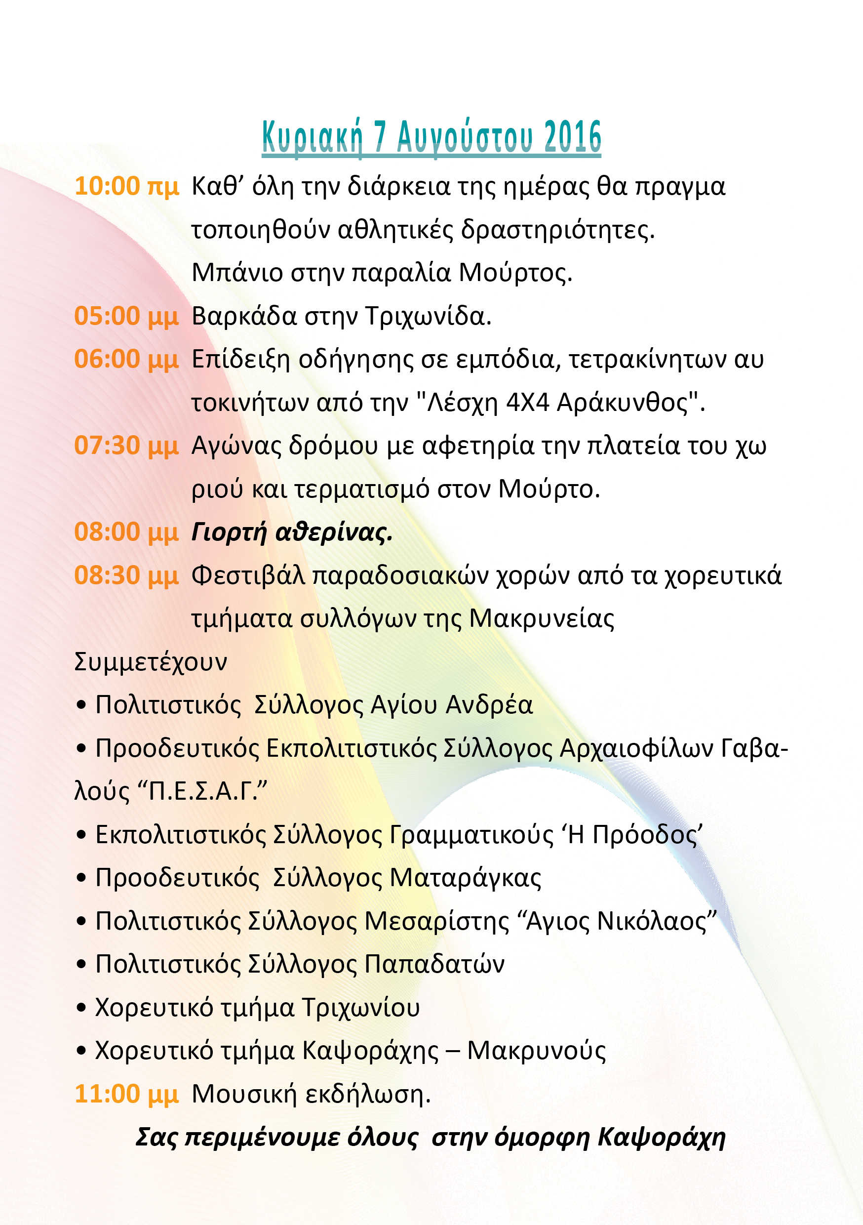 Πολιτιστικές Εκδηλώσεις Καψοράχη 2016.