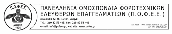 ΠΟΦΕΕ: Άμεση ανάγκη επανεξέτασης του άρθρου 70 του υπό διαβούλευση νομοσχεδίου του Υπουργείου Οικονομικών σχετικά με την ενίσχυση με τη μορφή επιστροφής ποσού ενοικίου