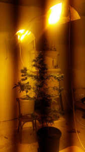 • σε υπνοδωμάτιο του σπιτιού, (2) δενδρύλλια κάνναβης σε γλάστρες, ύψους 1,1 και 0,9 μέτρων περίπου καθώς και εξοπλισμός τεχνητού φωτισμού για ανάπτυξη φυτών σε κλειστό χώρο